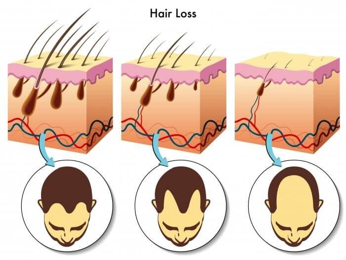 La rupture de cet équilibre induit un turnover trop rapide du cycle pilaire, une miniaturisation des cheveux et le dégarnissement progressif de la chevelure.